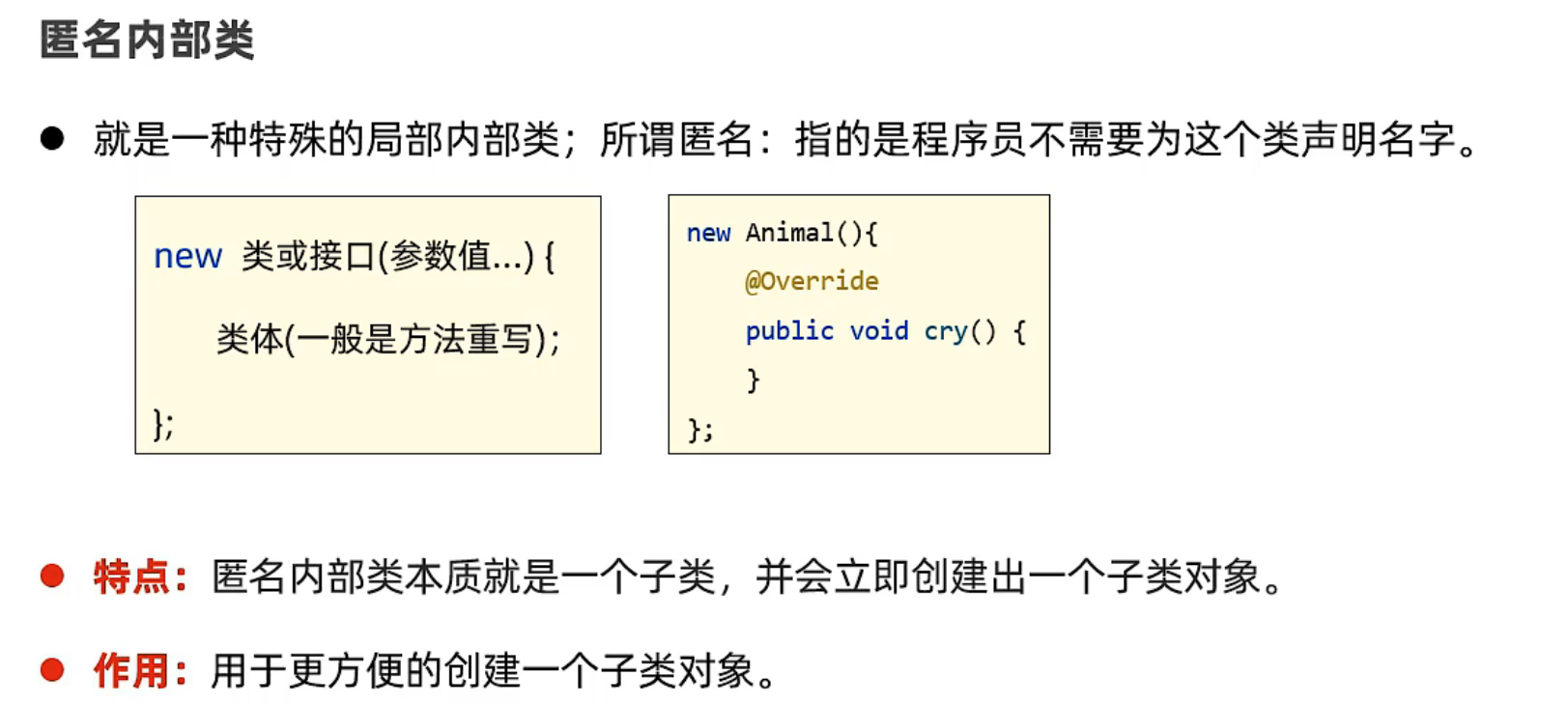 Animal a = new Animal() { @Override public void cry() { System.out.println("mmm"); } };