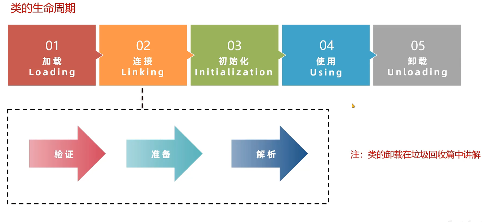 加载->连接->初始化->使用->卸载