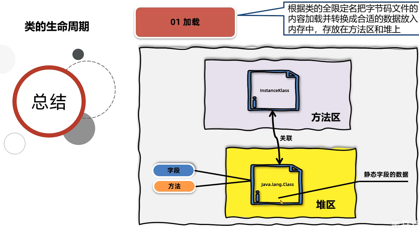 生成一个InstanceKlass对象 把保存类的所有信息 里面还包含实现特定功能比如多态的信息同时Java虚拟机还会在堆中生成一份与方法区中数据类似的java.lang.Class对象