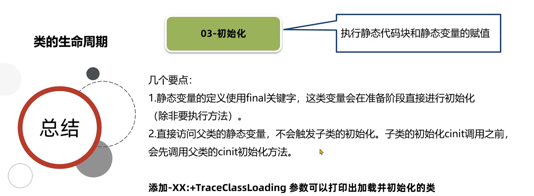 初始化阶段会执行静态代码块中的代码 并为静态变量赋值