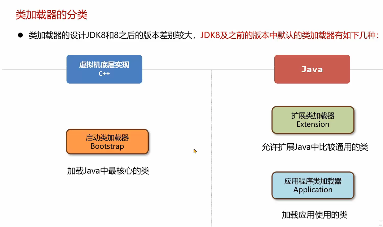启动类加载器(Bootstrap ClassLoader) 是有Hotspot虚拟机提供的 使用c++编写的类加载器