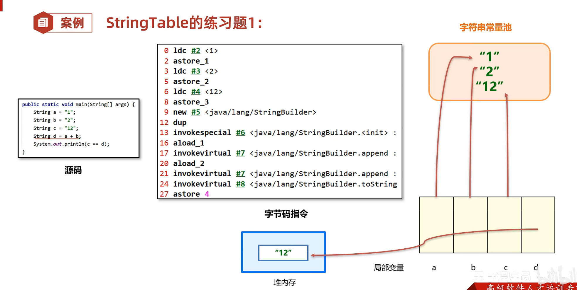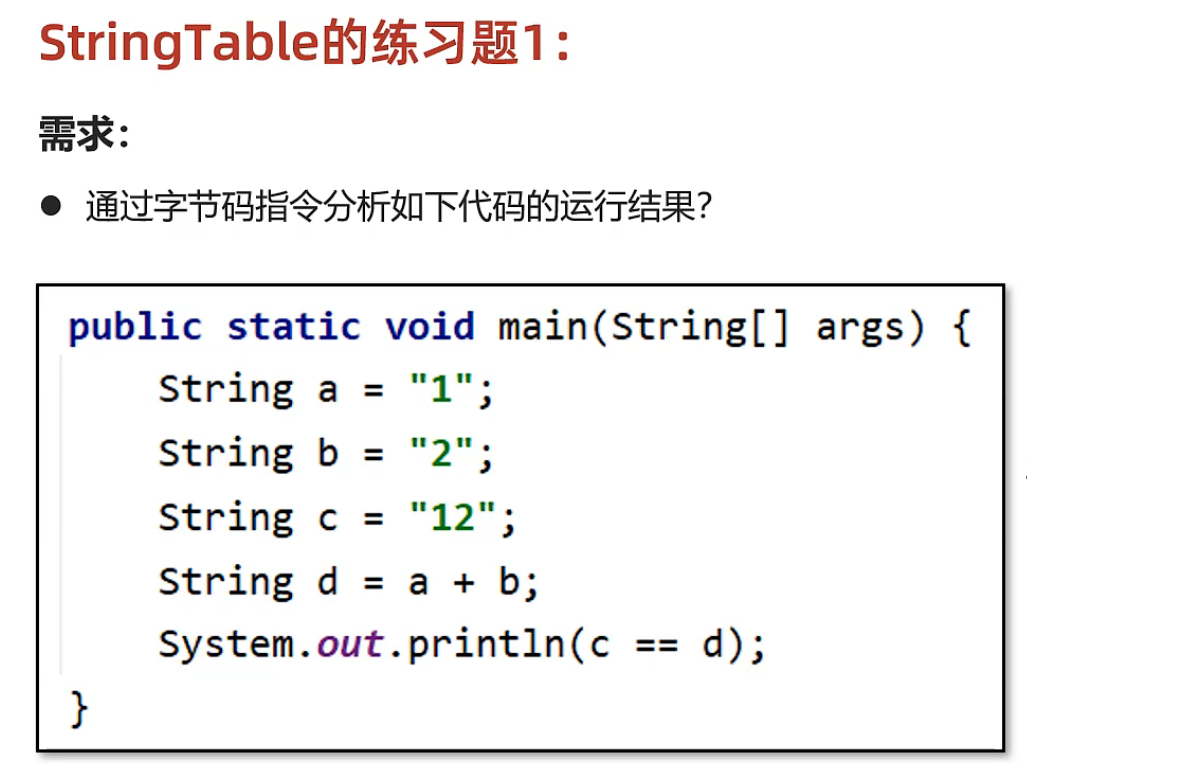 如上图所示显然是不相等 a b c 中存放的字符串常量池中的地址