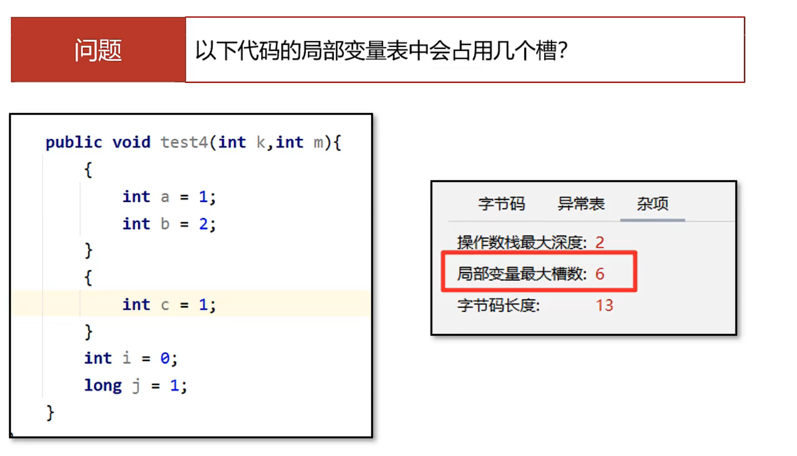 为了节省空间 局部变量表中的槽是可以复用的 一旦某个局部变量不再生效 当前槽就可以再次被使用