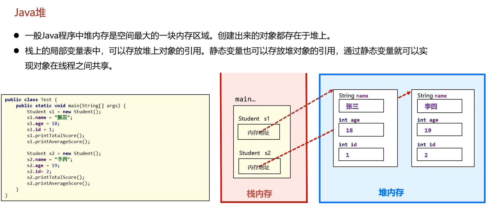 s1 通过new 关键字创建对象 最终会放在堆内存中 (s1是栈中的局部变量 用于表示字符串”123”在堆内存中的地址)