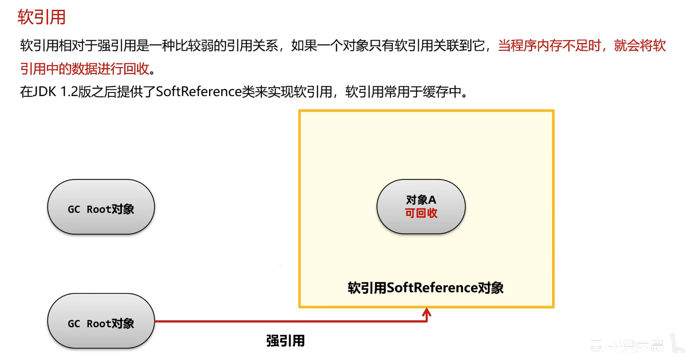 GCRoot 和 SoftReference对象之间应该是强引用关系 否则软引用对象也可能会被回收