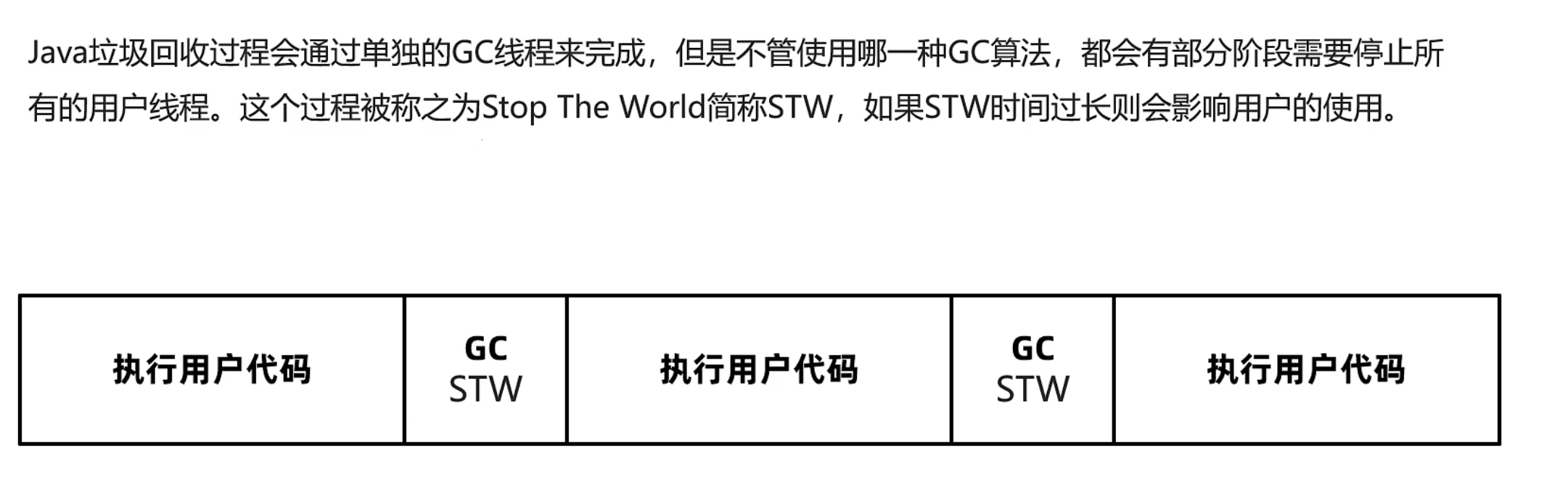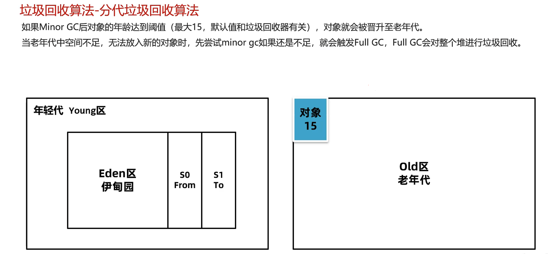 就会触发Full GC m, FUll GC会对整个堆(年轻代 + 老年代)进行垃圾回收 -> Full GC stw长 (长于Minor 的stw)