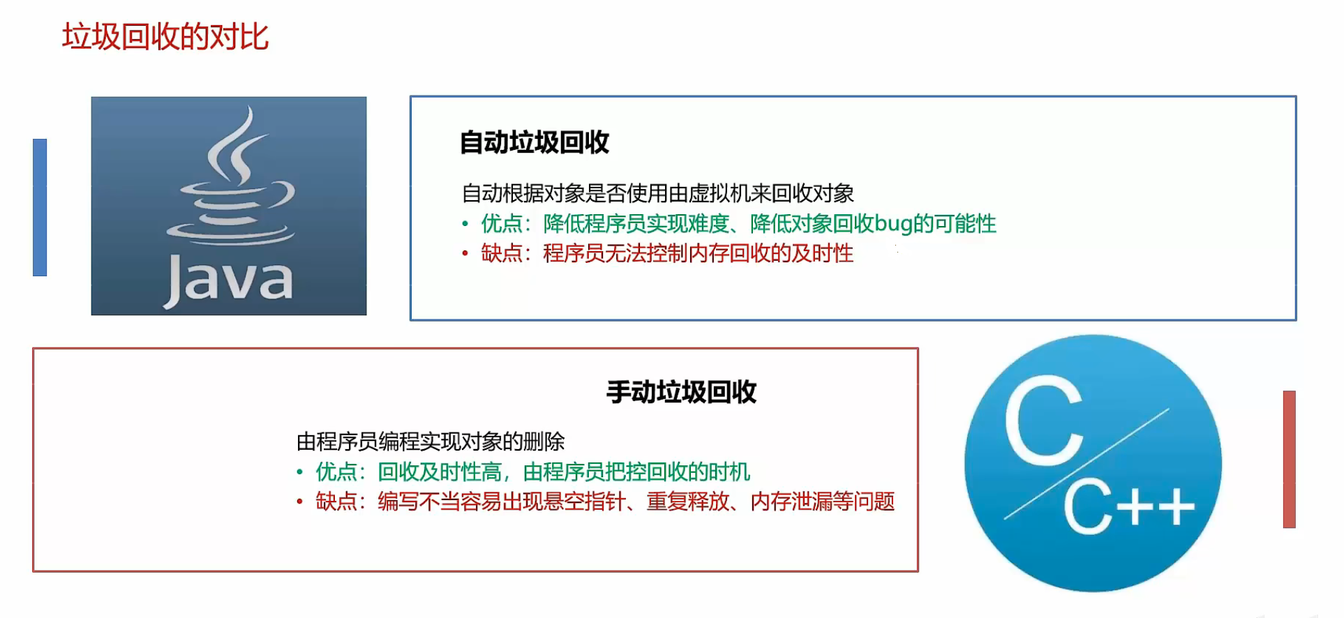 - 新生代和老年代使用不同的垃圾回收算法 新生代一般选择复制算法 老年代可以选择标记-清除和标记整理算法 由程序员来选择灵活度高的