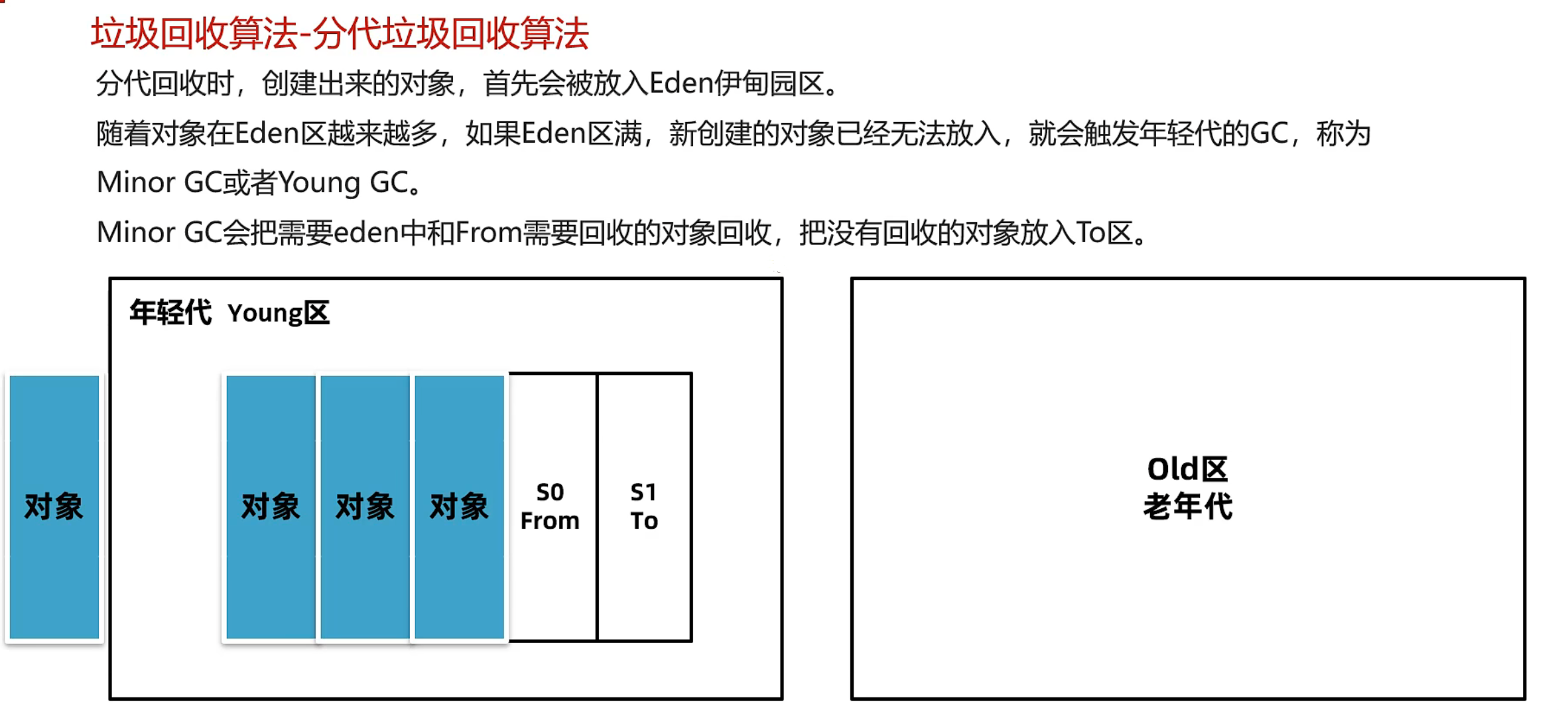 此时会回收Eden区和S1(from)中的对象 并把Eden和From区中剩余的对象放入S0