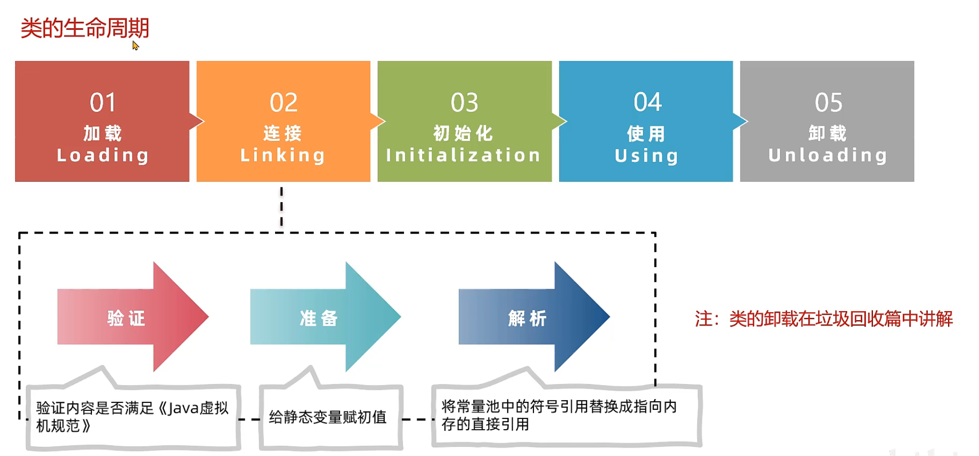 - 此类所有实例对象都已经被回收 在堆中不存在任何该类的实例对象以及子类对象