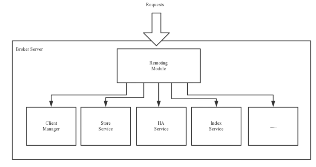 Remoting Module:整个broker的实体 负责处理来自 clients端的请求 而这个broker实体 则由以下模块构成