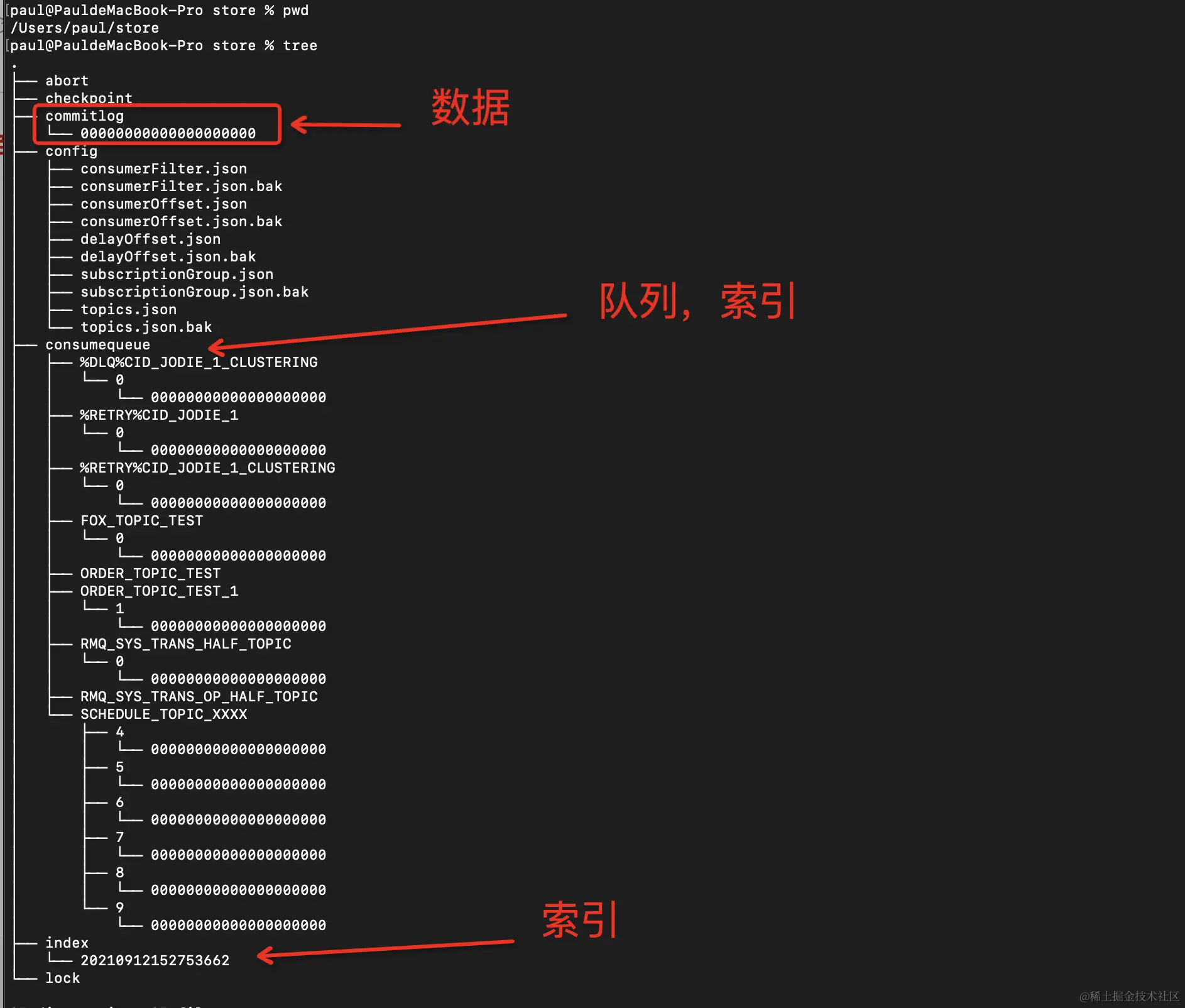 存放了commitlog文件 rocketmq的实际消息均是写在commitlog文件中