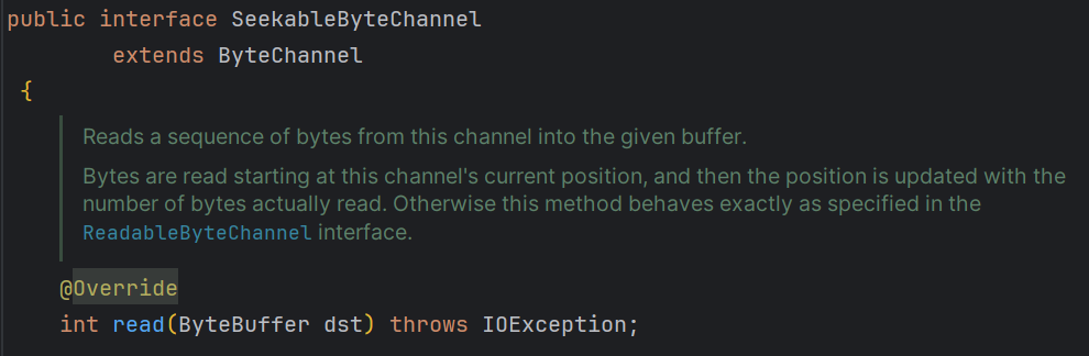 可以看到read 实际上是基于ByteBuffer 而我们可以看到ByteBuffer 其实真正访问的是HeapByteBuffer