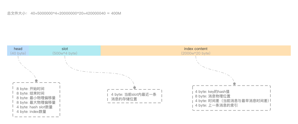 - 当一个indexFile中挂载的index索引单元数量 超出2000w个时 会创建新的indexFile 当带key的消息发送到来后 系统会找最新的indexFile 并从其indexHeader的最后4字节中读取到indexCount 若indexCount >= 2000w 时 会创建新的indexFile