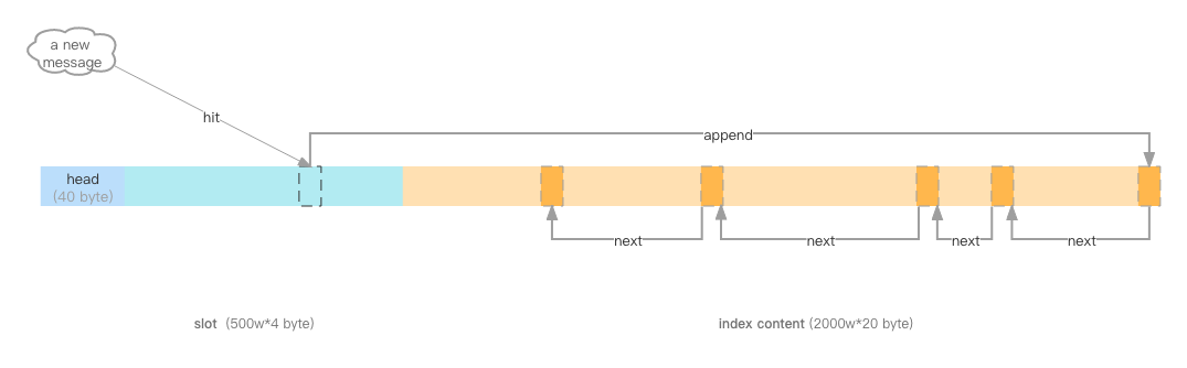 为了解决该问题 在每个index索引单元中增加了 preIndexNo 用于指定该slot当前index所索引单元的前一个index索引单元